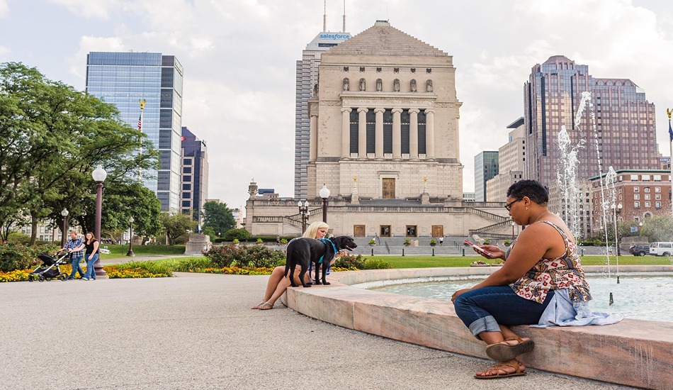 Lead photo – The Indiana War Memorial dominates one end of Indiana War Memorial Plaza. (Courtesy of Visit Indy)